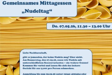 Gemeinsames Mittagessen „Nudeltag“ am 07.05.2026
